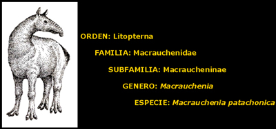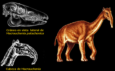 Macrauchenia, es un peculiar animal típico de la megafauna sudamericana, del Pleistoceno superior, Pampeano superior de Argentina, Bolivia, Uruguay y Brasil , cuya principal característica es la posición retrasada que presentan las fosas nasales sobre su cráneo; lo que ha llevado a pensar a muchos sino a todos los paleontólogos, que este animal tenia una proboscis (trompa), lo que le daba un aspecto muy particular.